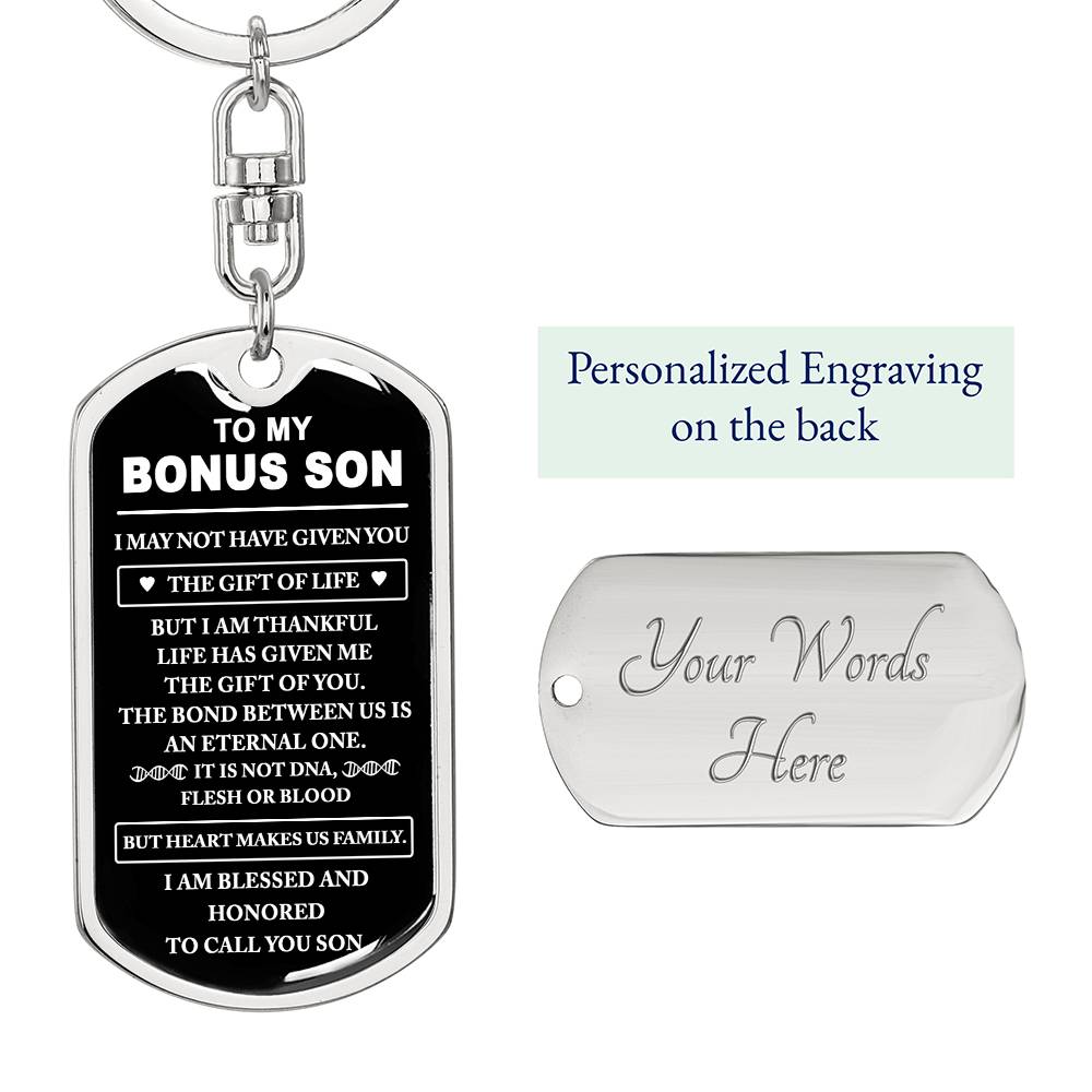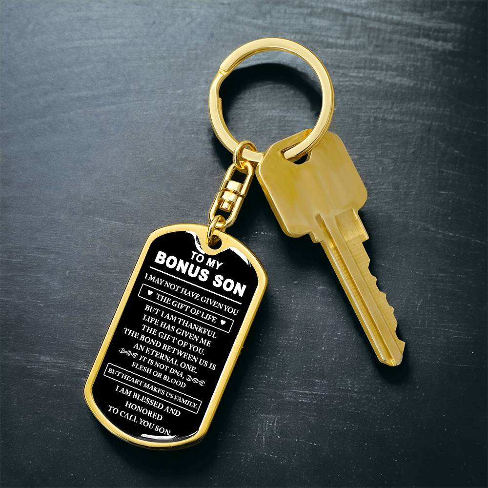 Bonus Son Keychain, Bonus Son Gift, Step Son Gift, Stepson Birthday Gift, Adopted Son Gift, Graduation Gift For Bonus Son, Christmas Gifts