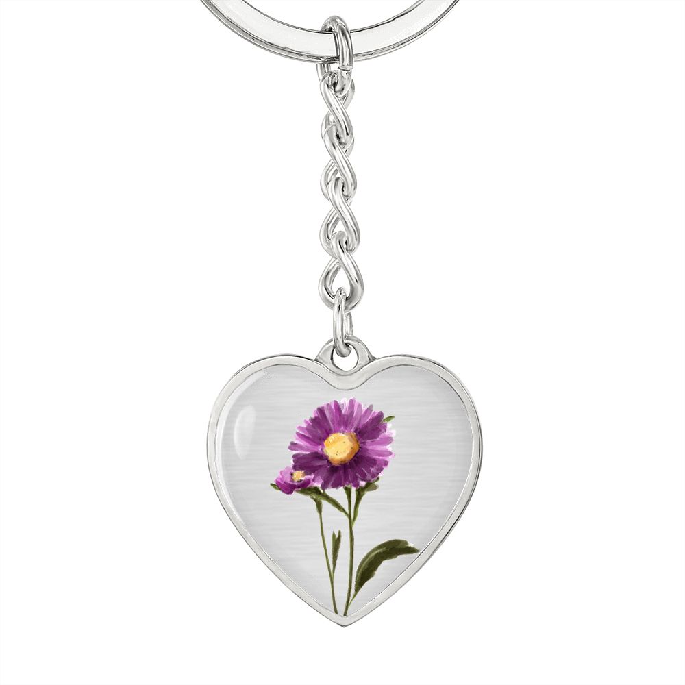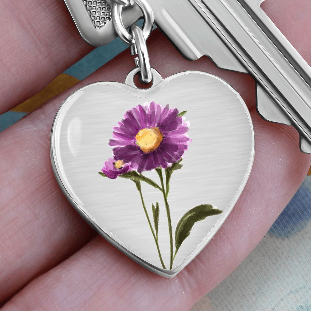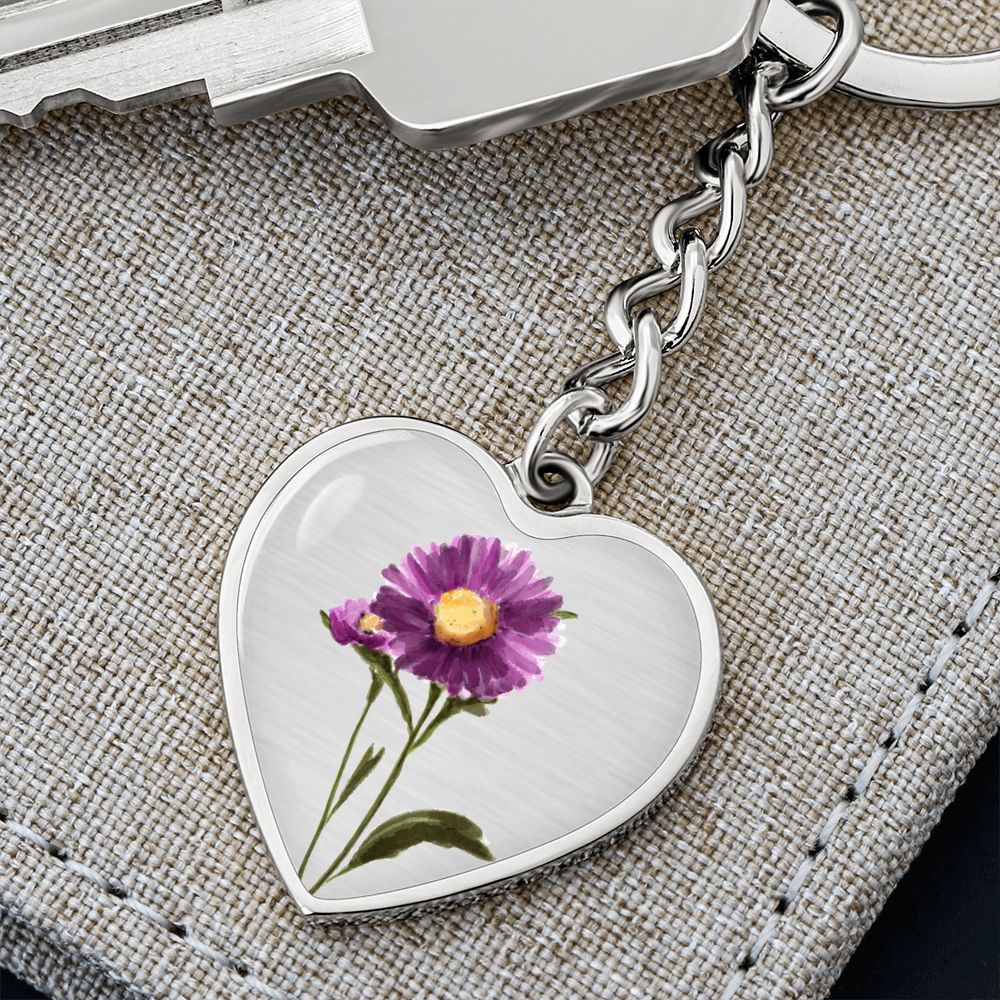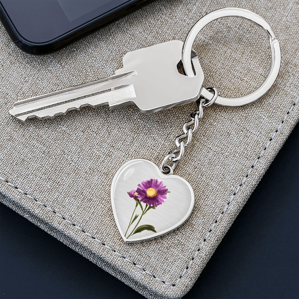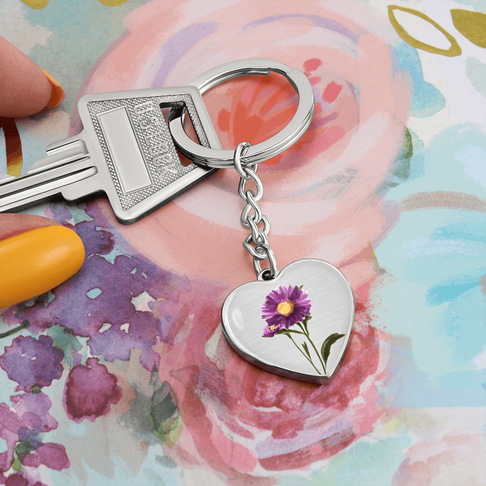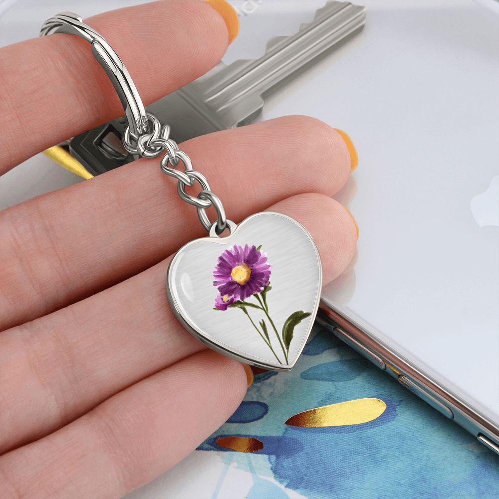 September Birth Flower, Aster Keychain, Birth Flower Keychain, Birthday Gift For Her, Gift for Daughter, Sister, New Mom Gift - Silver
