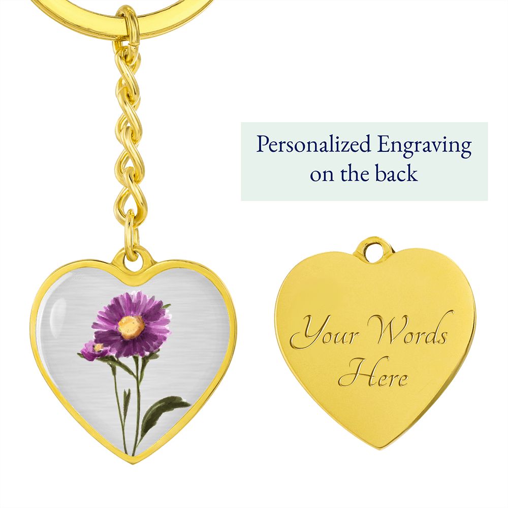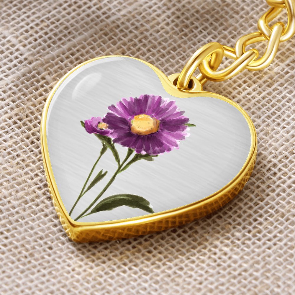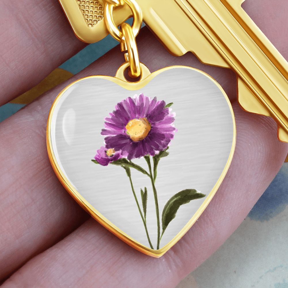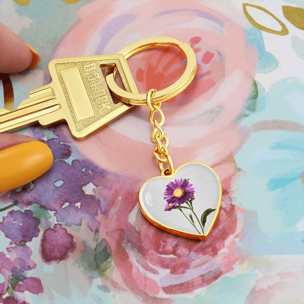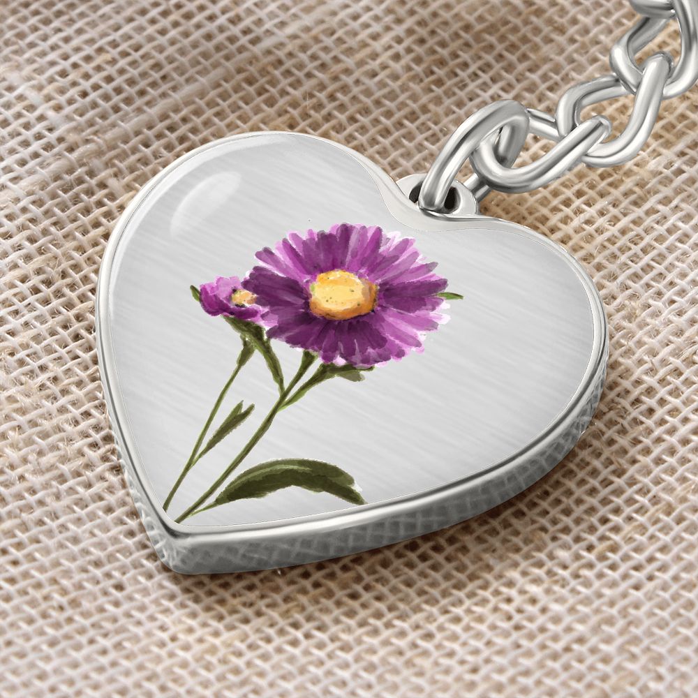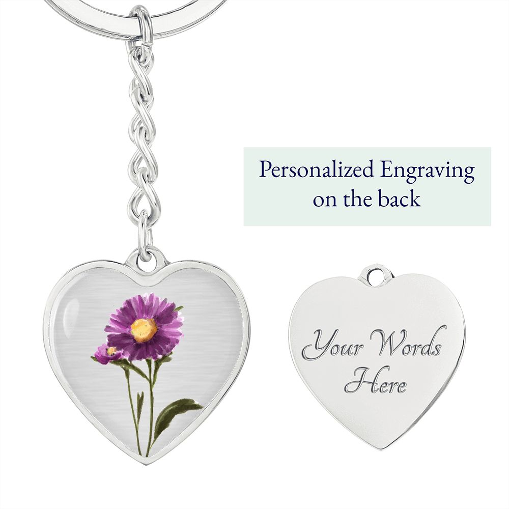 September Birth Flower, Aster Keychain, Birth Flower Keychain, Birthday Gift For Her, Gift for Daughter, Sister, New Mom Gift - Silver