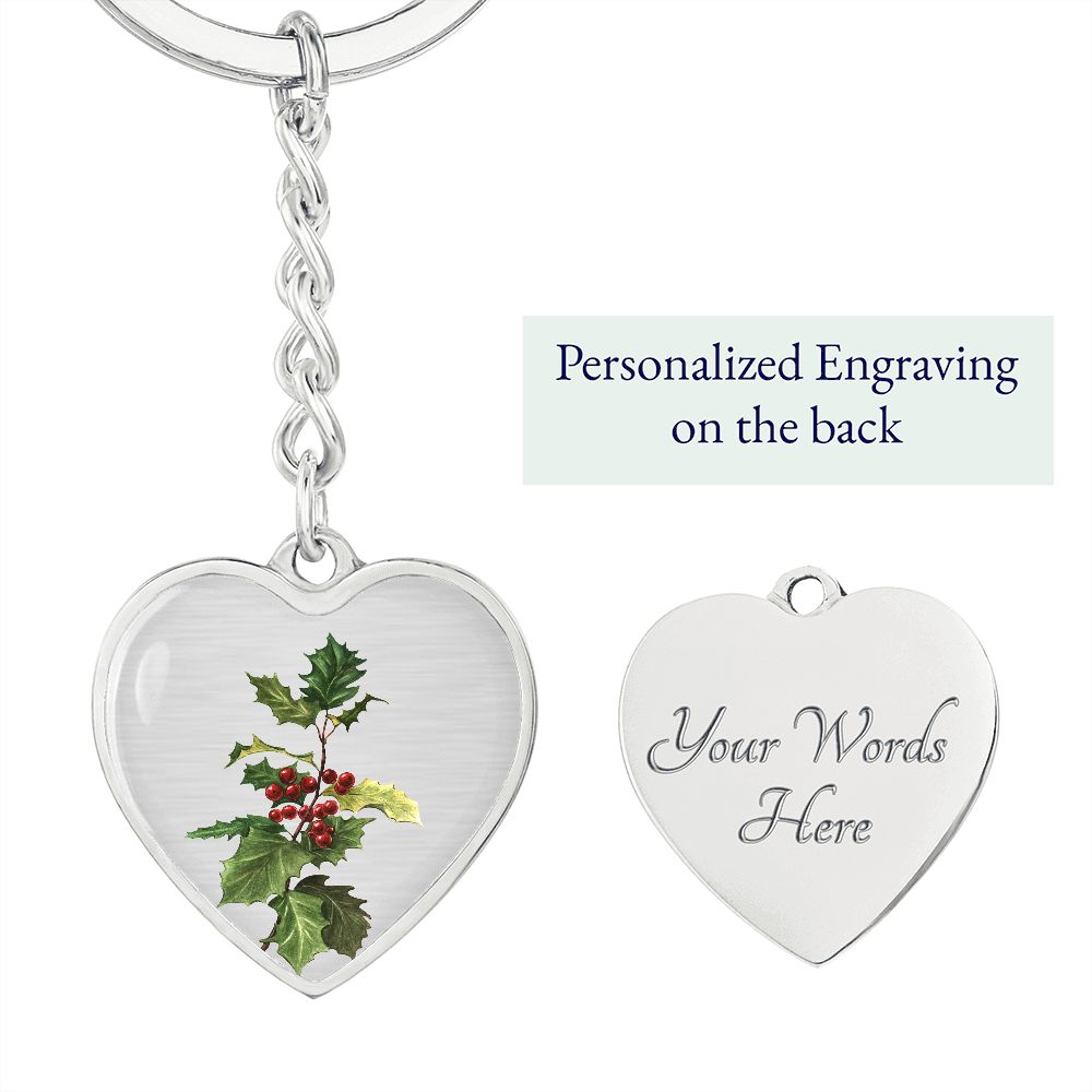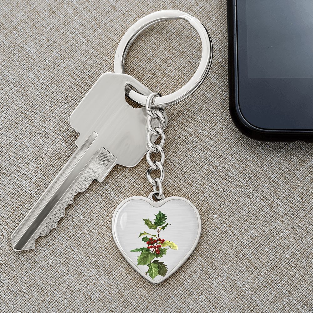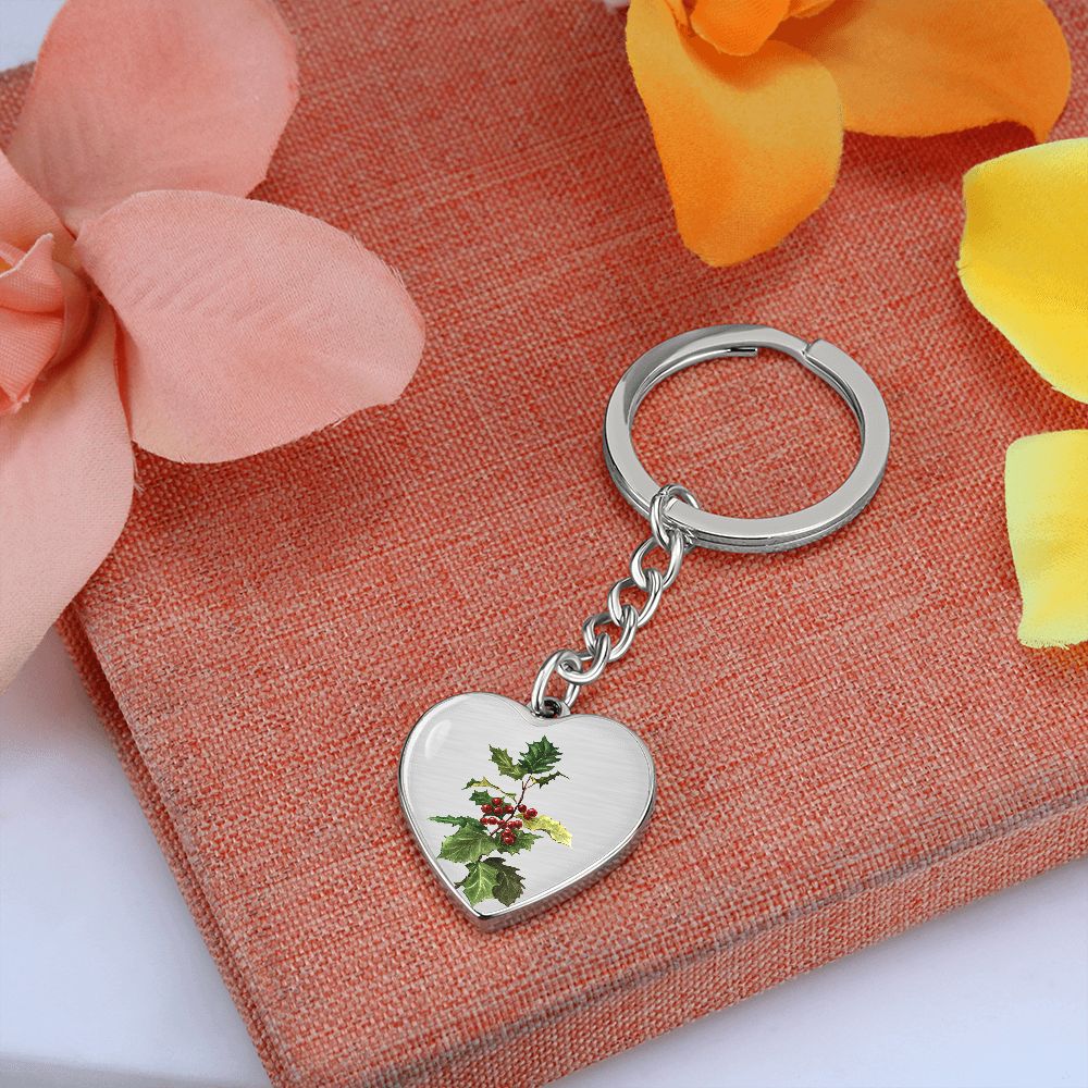 December Birth Flower, Holly Berry Flower Keychain, Birth Flower Keychain, December Birthday Gift For Her, Best Friend, Birth Month Flower - Silver