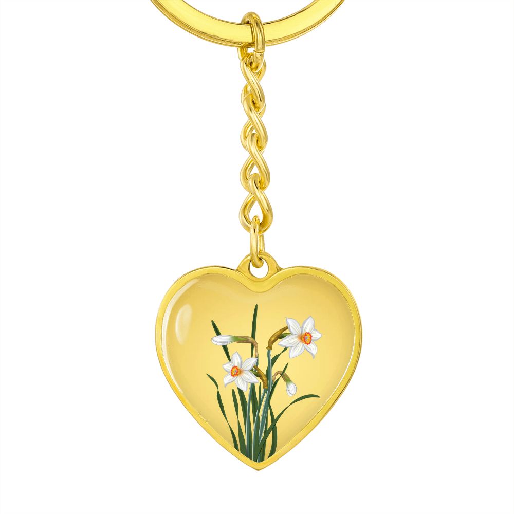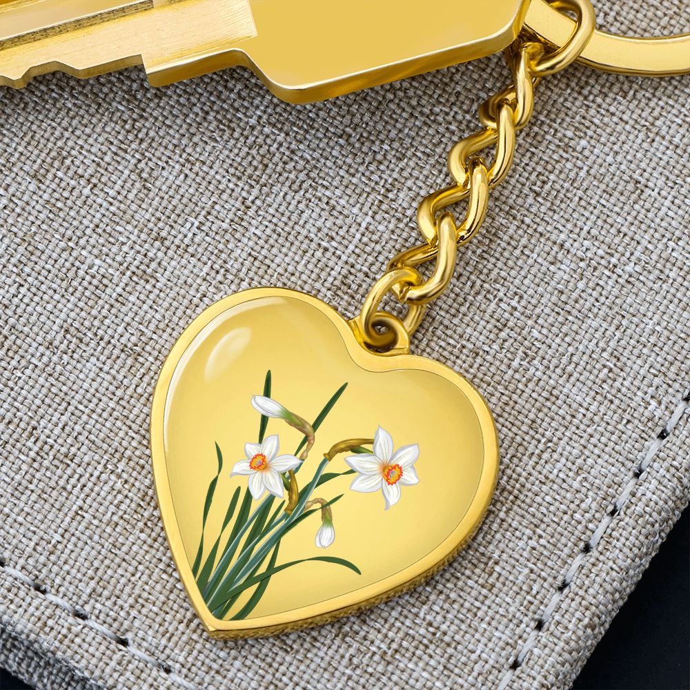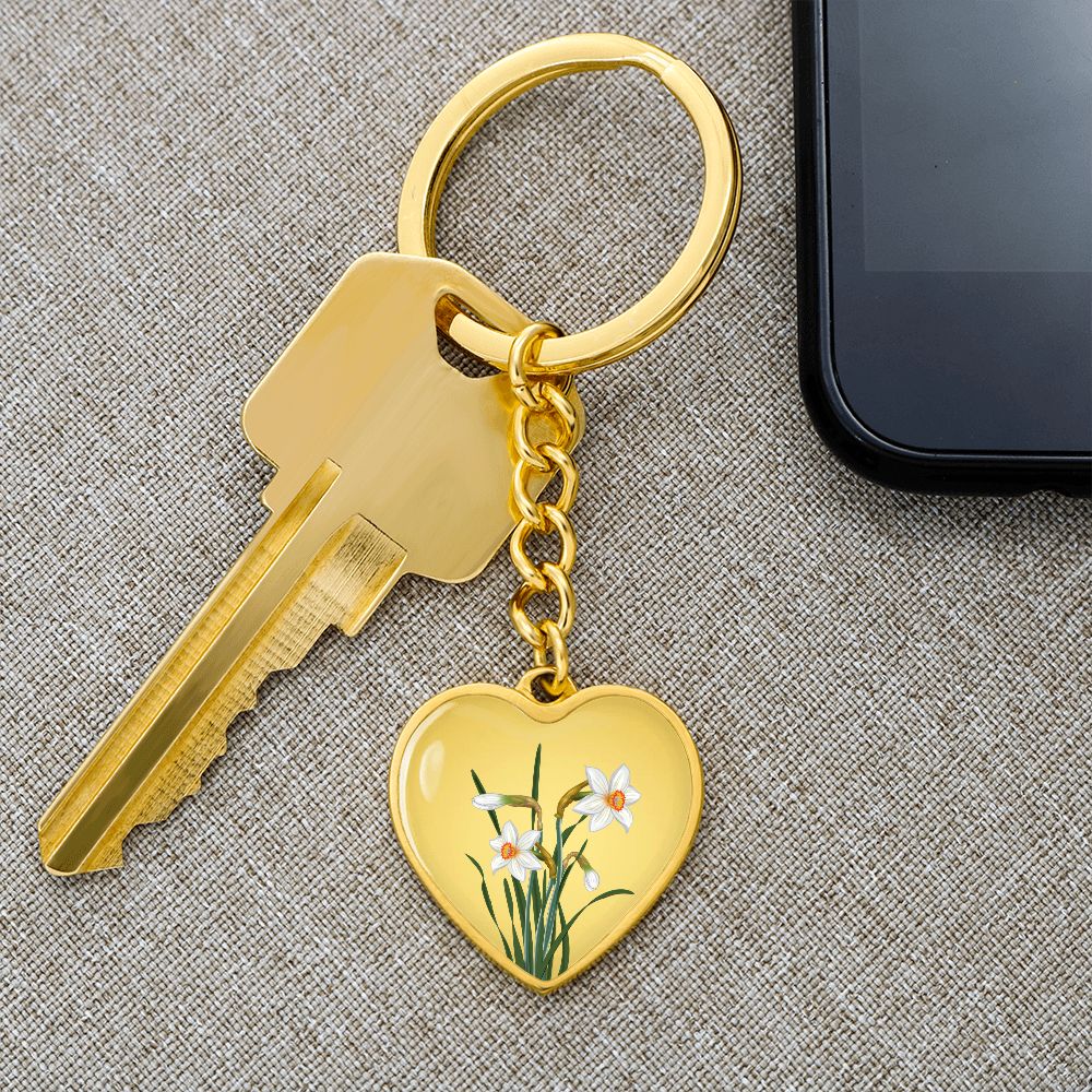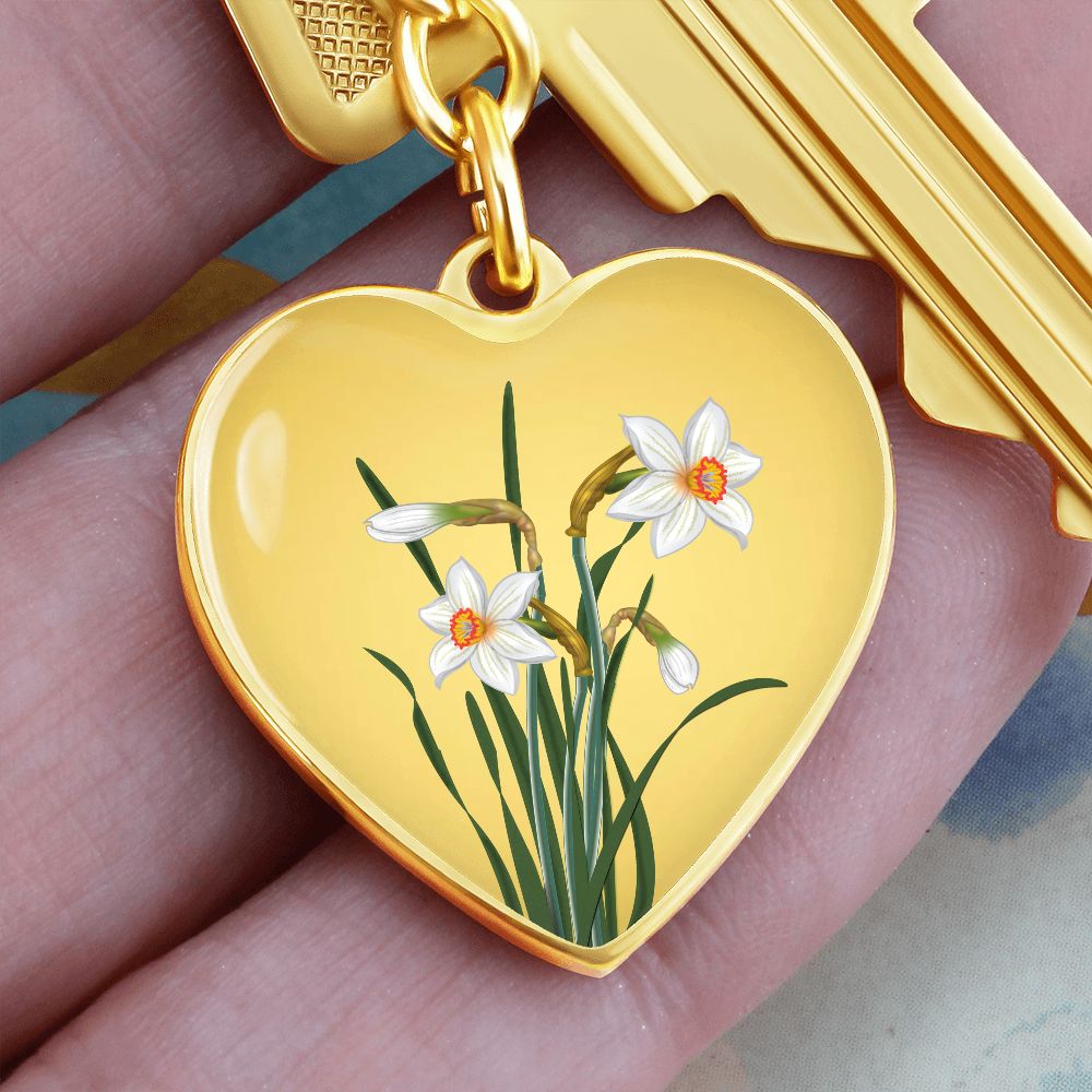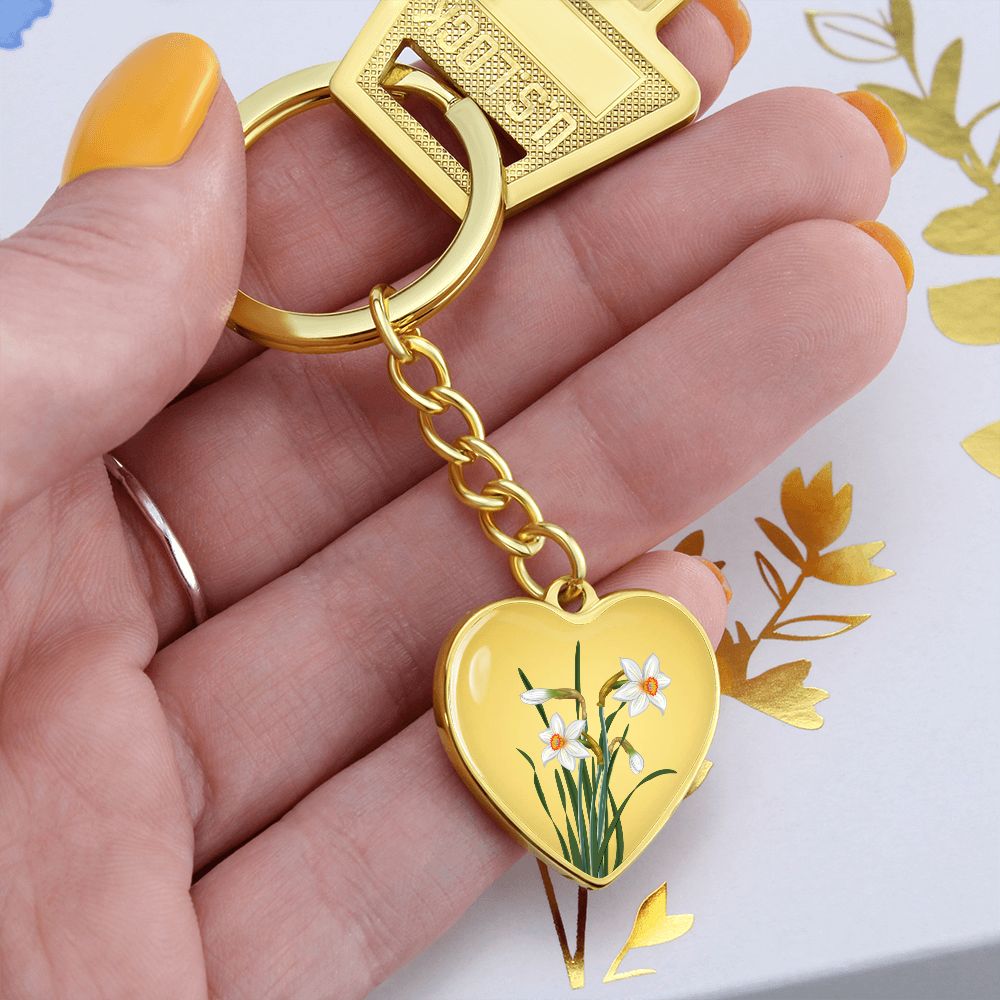December Birth Flower, Narcissus Keychain, Birth Flower Keychain, December Birthday Gift For Her, Best Friend, Birth Month Flower Keychain - Gold