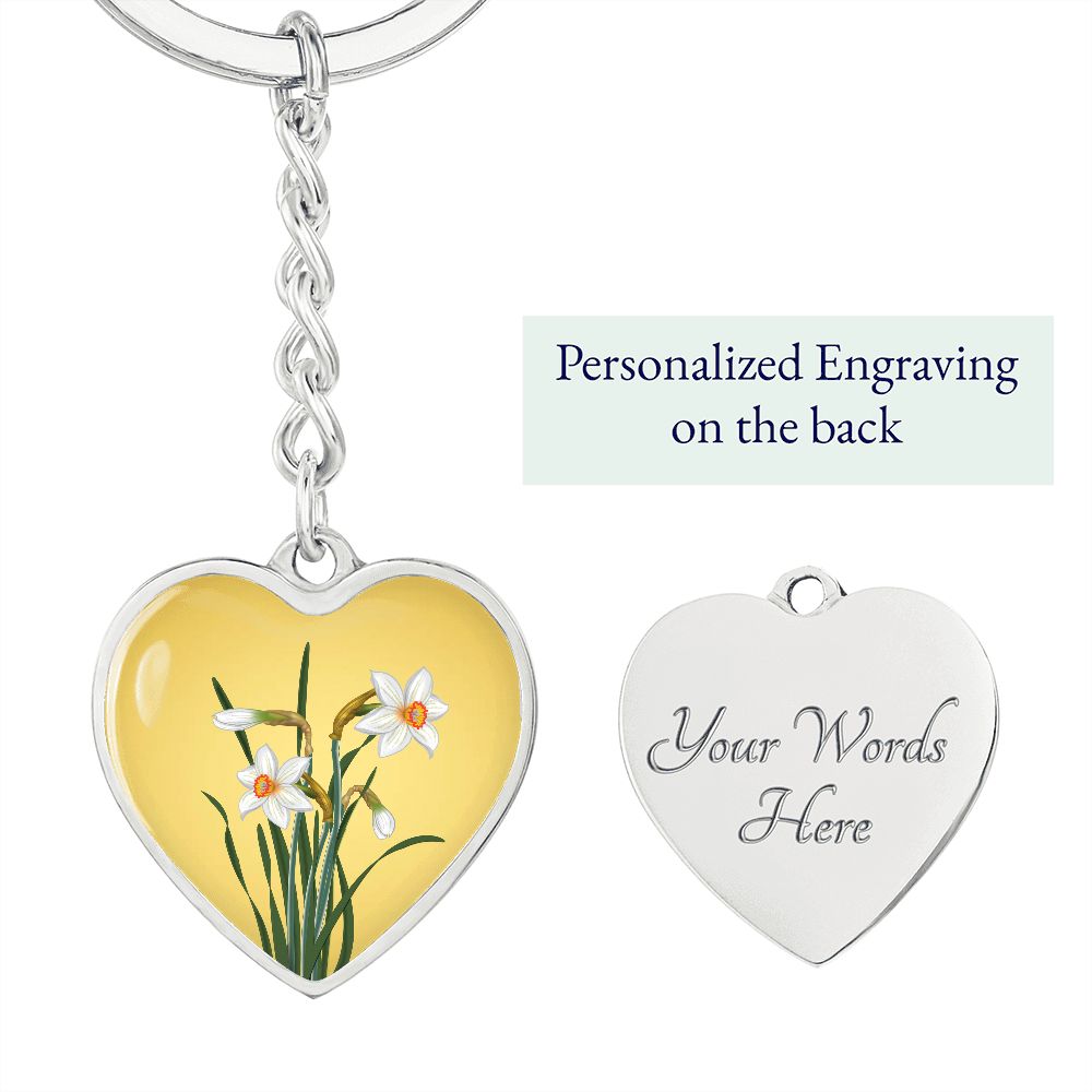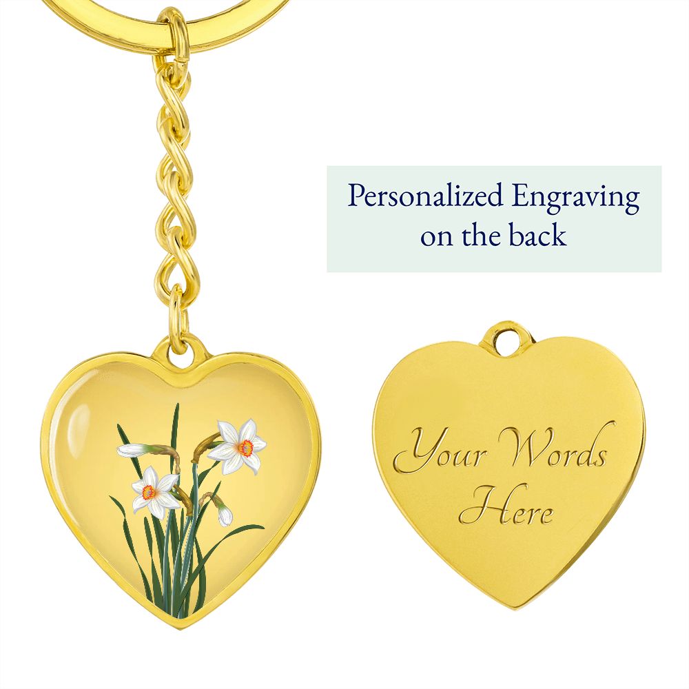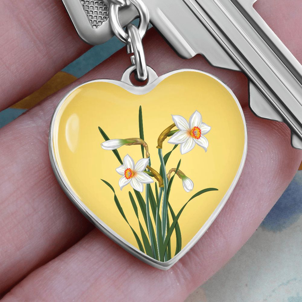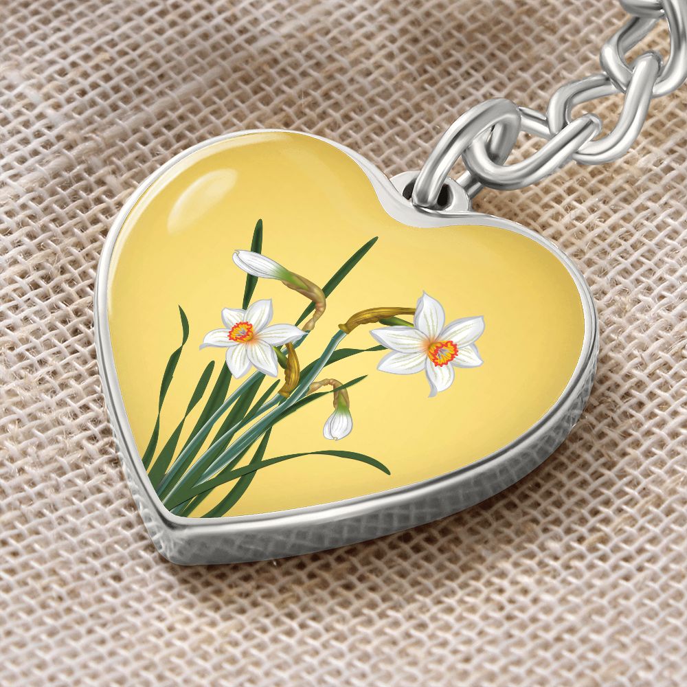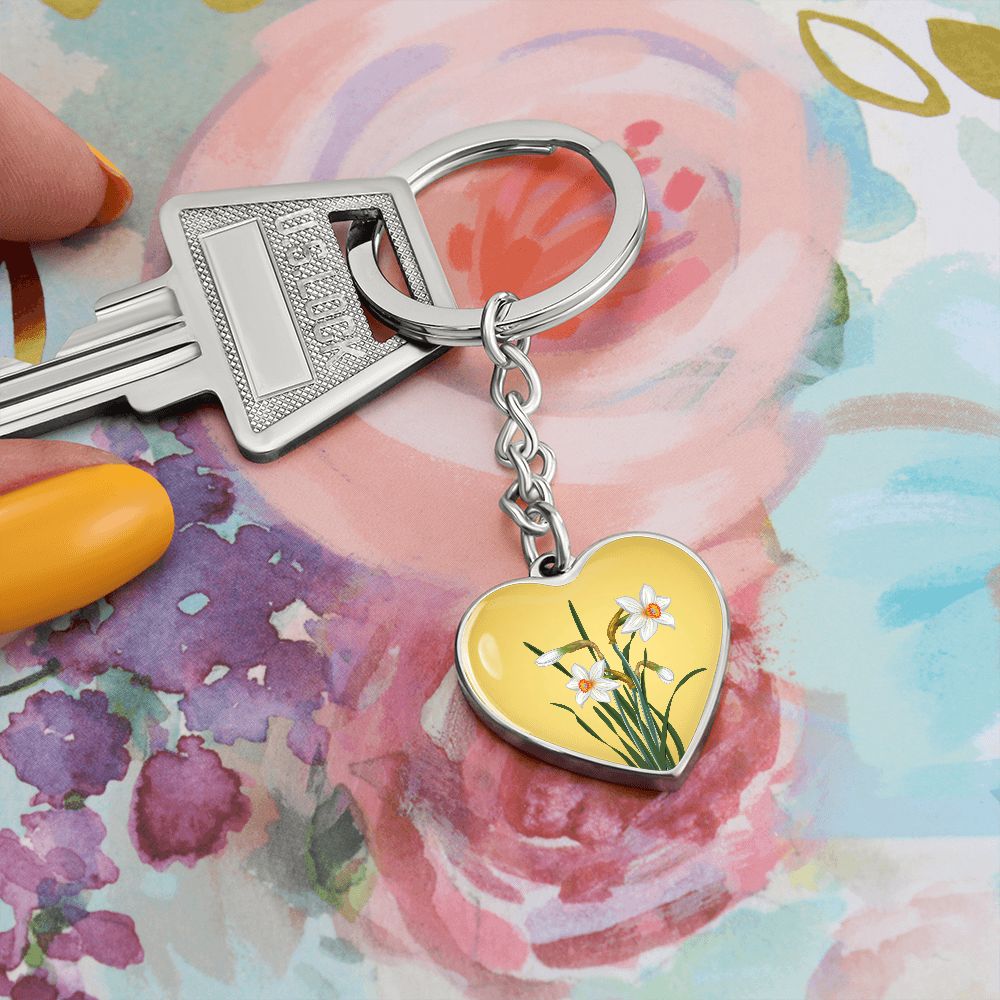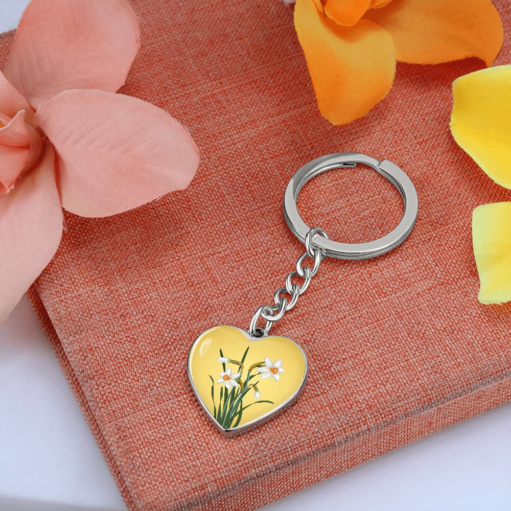 December Birth Flower, Narcissus Keychain, Birth Flower Keychain, December Birthday Gift For Her, Best Friend, Birth Month Flower Keychain - Gold