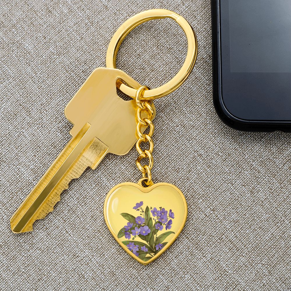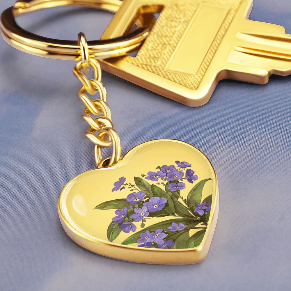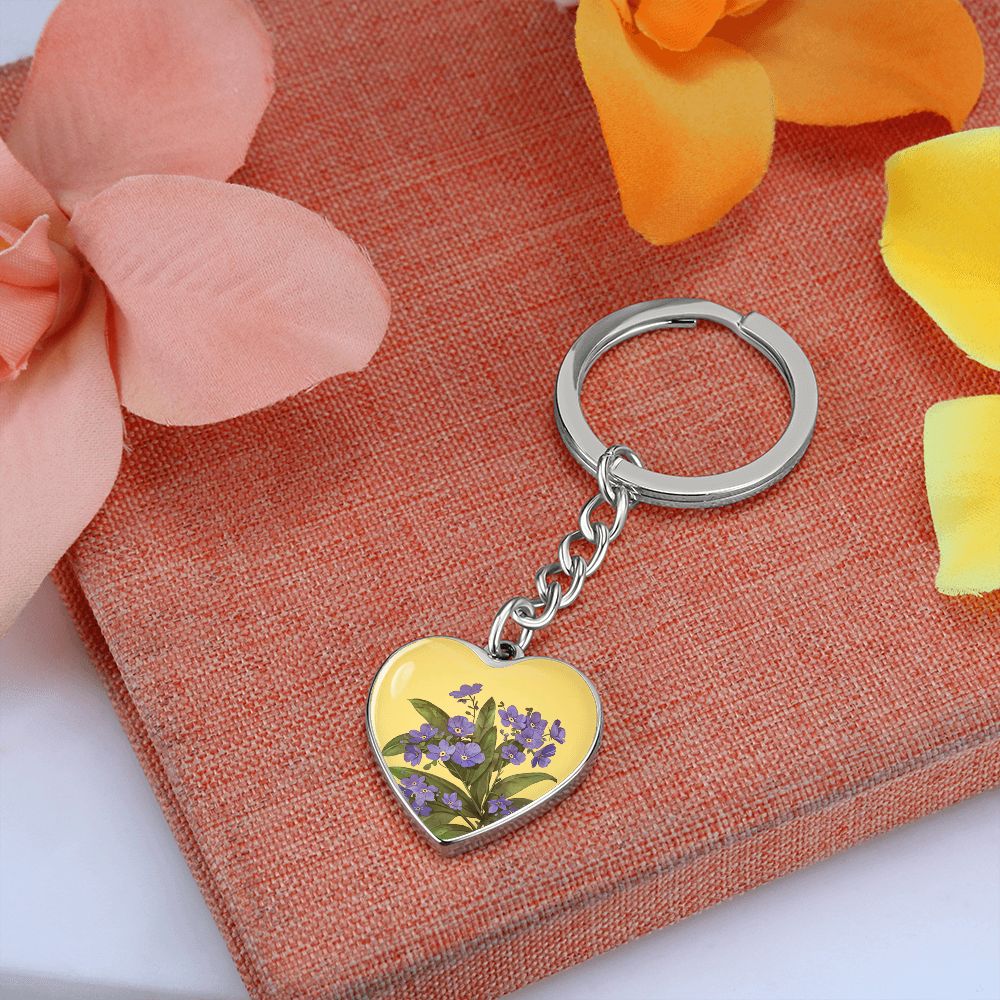 February Birth Flower Keychain, Violet Keychain, Birth Month Flower Keychain, Birthday Gift For Her, Gift for Daughter, Sister, New Mom Gift - Gold