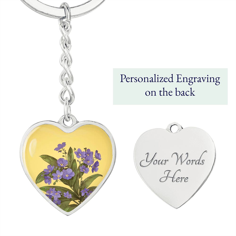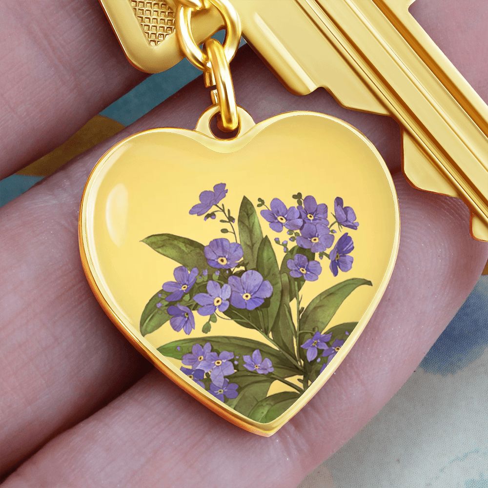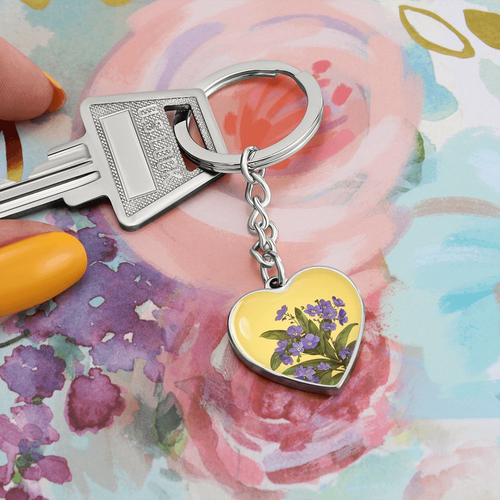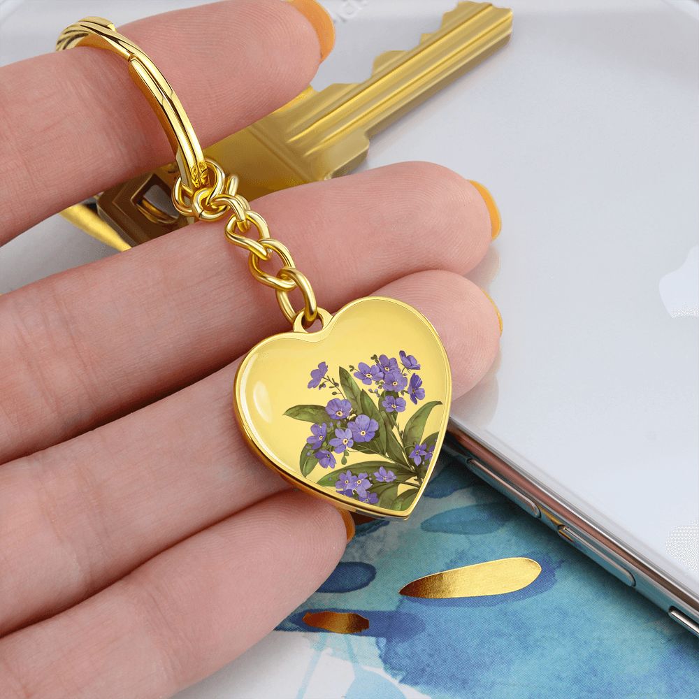 February Birth Flower Keychain, Violet Keychain, Birth Month Flower Keychain, Birthday Gift For Her, Gift for Daughter, Sister, New Mom Gift - Gold
