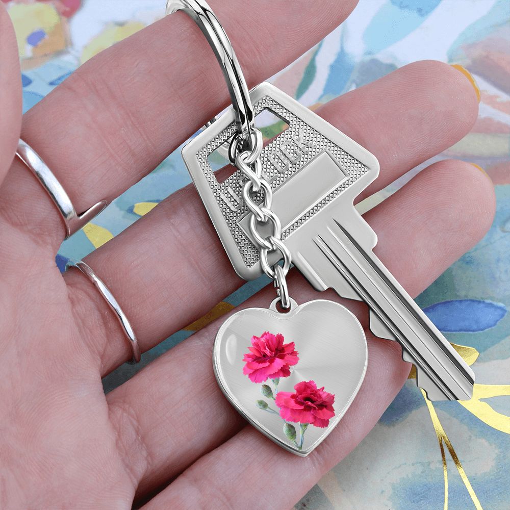 January Birth Flower Keychain, Carnation Keychain, Birth Month Flower Keychain, Birthday Gift For Her, Gift for Daughter, Sister, New Mom Gift