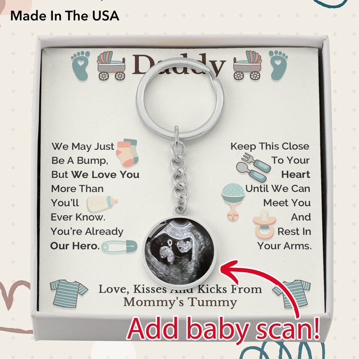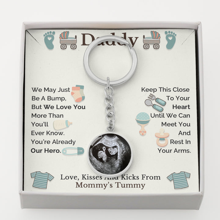• Daddy To Be Gift From Twin Baby Bump, Twin Baby Gift for New Dad, Pregnancy Scan Keychain, Sonogram Keychain for Daddy, Ultrasound Gift