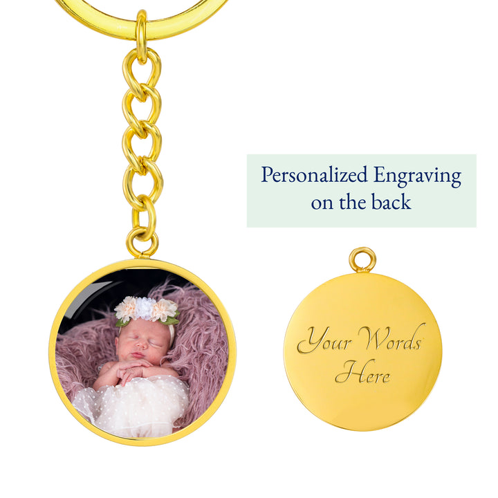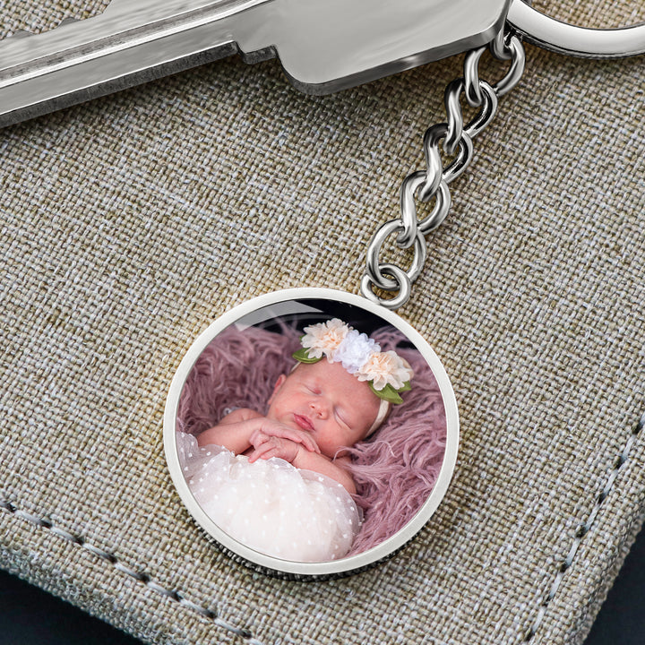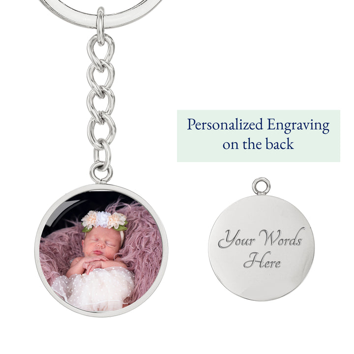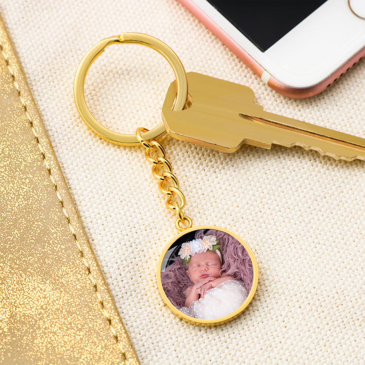 This quality Circle Photo Keychain is the perfect keepsake! Whether for yourself or a loved one.
