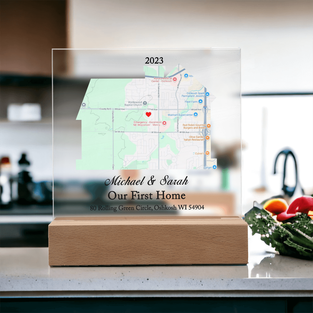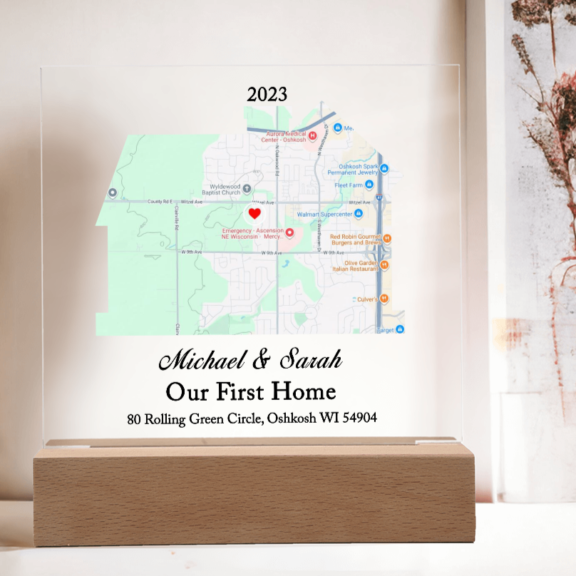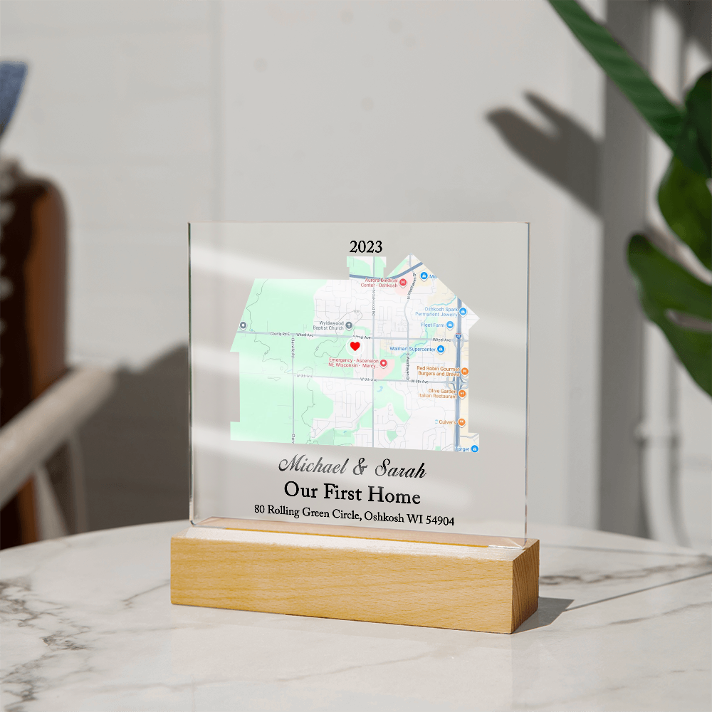 What better way to decorate a new home than a visual display of the exciting new beginning that comes with every new home purchase! Our personalized home map acrylic plaque is a unique Housewarming Gift for yourself or your loved ones, that is sure to be appreciated and is likely to be treasured for years to come!